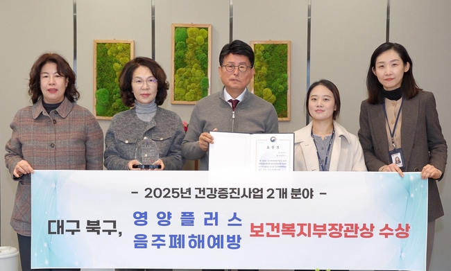 [시사뉴스 이성동 기자] 대구 북구보건소는 2025년 지역사회 통합건강증진사업 2개 분야(영양플러스사업·음주폐해예방사업)에서 우수기관으로 선정되어 보건복지부장관 표창을 수상하는 영예를 안았다.