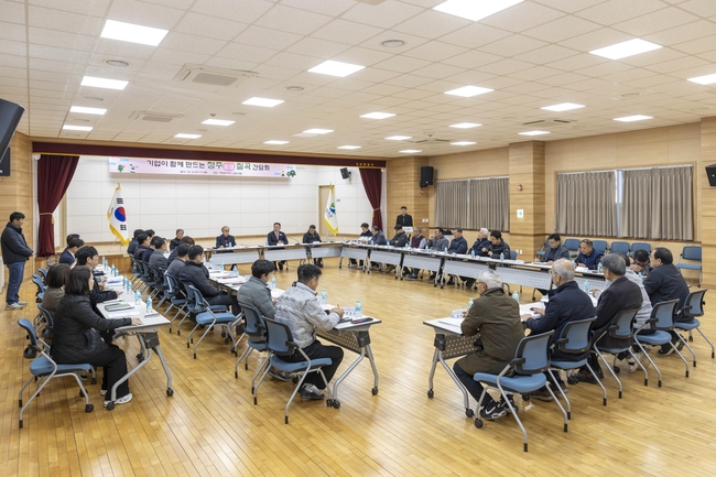 [시사뉴스 이성동 기자] 칠곡군은 올해 지역 기업과의 소통 강화를 위해 릴레이 방식으로 추진해 온 “기업과 함께하는 칠곡 정주간담회”의 마지막 일정으로 12월 3일 오전 11시 지천면사무소 강당에서 지천면 소재 기업인협의회 3개 단체(신리공단협의회, 내실공단협의회, 창평공단협의회)와의 간담회를 개최했다. 이날 행사에는 지천면 소재 기업입 30여명이 참석해 지역 정주여건 개선 방안 및 현안을 심도 있게 논의했다.