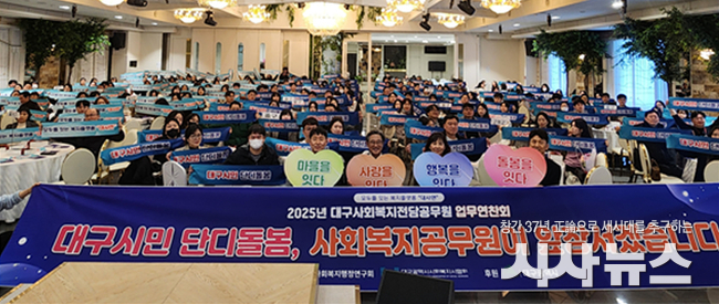 [시사뉴스 하정수 기자] 대구광역시와 대구사회복지행정연구회, 대구사회복지사협회는 12월 3일(수) 오후 2시, 웨딩비엔나 컨벤션홀에서 ‘대구사회복지전담공무원 업무연찬회’를 개최했다.