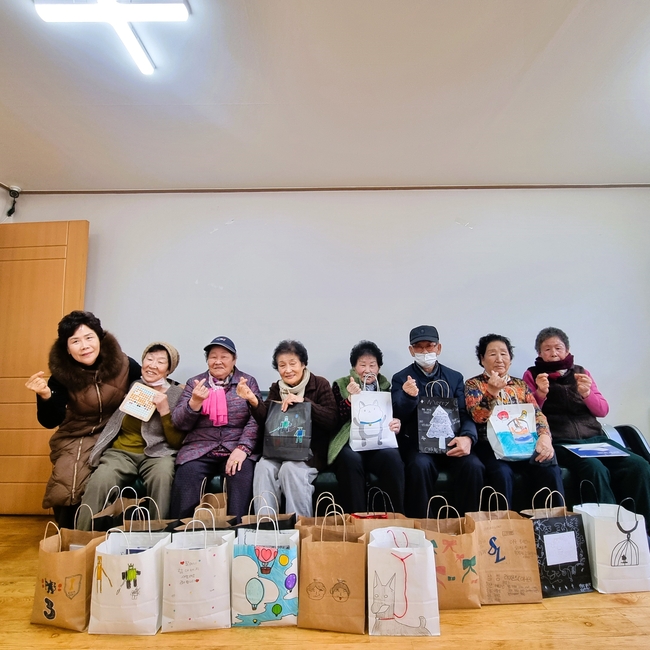 학생들은 단순한 물품 전달을 넘어, 어르신들에게 보내는 손편지와 함께 후원품을 담을 종이가방도 직접 꾸며 활동에 특별한 의미를 더했다.