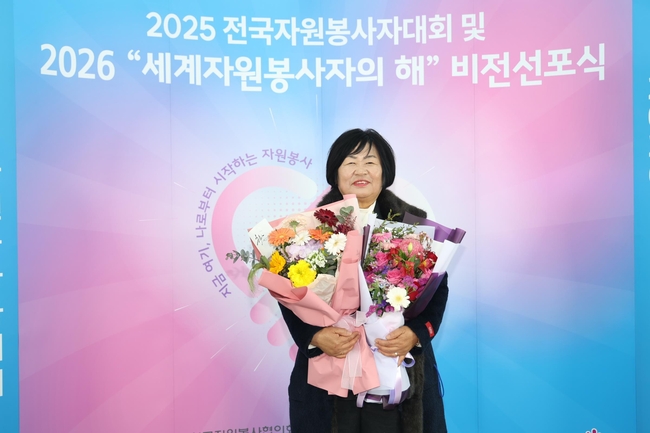 [시사뉴스 이성동 기자] 지난 12월 5일 열린‘전국자원봉사자대회’기념식에서 수년간 지역사회를 위해 헌신적인 자원봉사 활동을 펼쳐온 정영미 칠곡군 자원봉사자가‘2025 대한민국 자원봉사대상’에서 영예의 국무총리 표창을 수상했다.