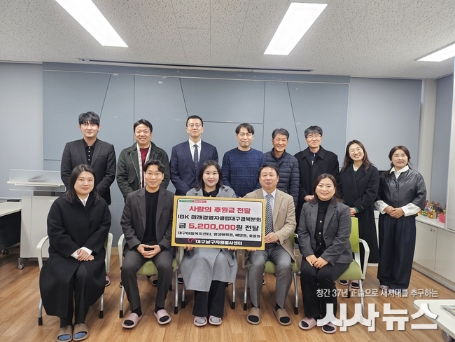 [시사뉴스 장시목 기자]대구 남구자원봉사센터(센터장 이창지)는 지난 12월 17일 IBK미래경영자클럽 대구·경북분회(회장 권보은)와 함께 남구 관내 아동양육시설을 위한 후원금 전달식을 개최했다.