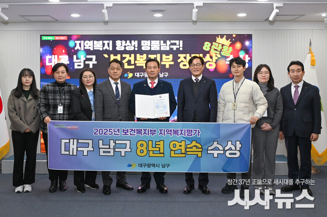 [시사뉴스 장시목 기자]대구 남구(구청장 조재구)는 2025년 보건복지부 지역복지사업 평가에서 꾸준한 노력으로 지역 복지 향상에 기여한 점을 인정받아 ‘찾아가는 보건복지서비스 제공’ 분야 우수지자체로 선정되었다.