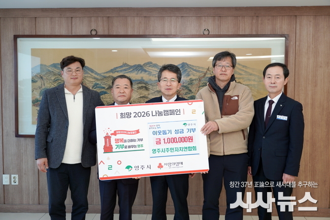 [시사뉴스 장시목 기자]영주시 주민자치연합회(회장 신인식)는 지난 18일 시청 부시장실에서 연말을 맞아 『희망2026 나눔 캠페인』 이웃돕기 성금 100만 원을 기탁했다.
