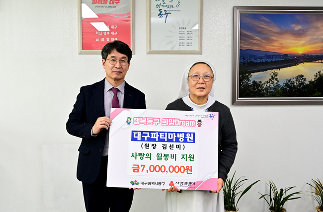 [시사뉴스 이성동 기자] 대구파티마병원(원장 김선미)은 지난 26일, 동구청을 방문해 관내 어려운 이웃들을 돕기 위한 사랑의 월동비 700만 원을 전달했다.