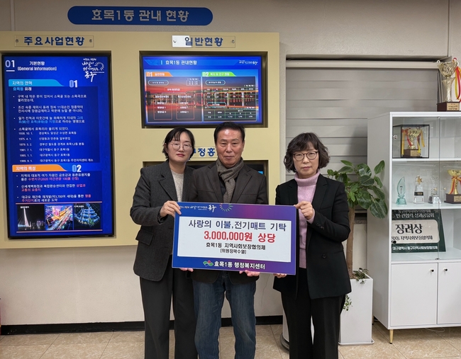 [시사뉴스 이성동 기자] 대구 동구 효목1동 지역사회보장협의체(위원장 곽수열)은 지난 26일, 겨울이불과 전기매트 등 300만원 상당의 물품을 행정복지센터에 기탁했다.