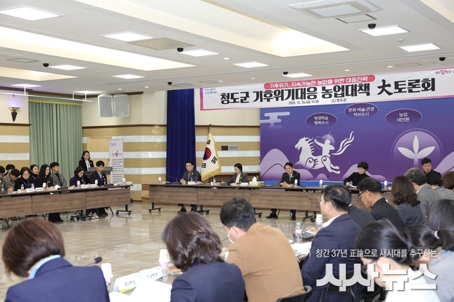 [시사뉴스 장시목 기자]청도군(군수 김하수)은 지난 26일「기후위기 대응 농업대책 大토론회」를 개최하여 기후변화로 인한 농업 환경 변화에 대응하기 위한 다양한 정책 방향을 논의하고, 주요 소득작물의 안정적 생산을 저해하는 요인을 선제적으로 발굴하고 지역 여건에 맞는 지속가능한 농업 전략 마련에 나섰다.