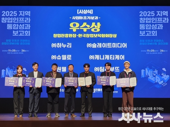 사진 : 2025 지역 창업인프라 통합성과보고회에서 창업 인큐베이팅 경진대회 사업화 부문 우수상 수상자들 - 오른쪽 첫 번째 박상진 대표