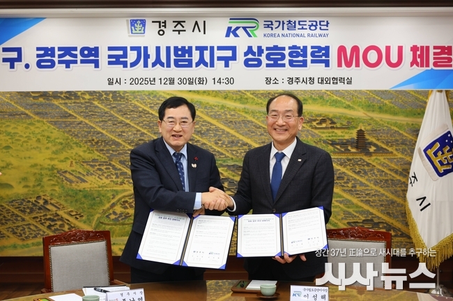 경주시는 지난달 30일 시청 대외협력실에서 주낙영 경주시장과 이성해 국가철도공단 이사장이 참석한 가운데 ‘구(舊) 경주역 도시재생 혁신지구 공모 추진을 위한 업무협약(MOU)’을 체결했다고 1일 밝혔다.