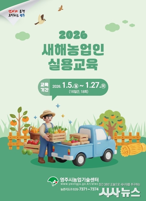 [시사뉴스 장시목 기자]영주시는 오는 1월 5일부터 27일까지 이상기상에 대응하고 경쟁력 있는 농업 기반을 마련하기 위해 ‘2026년 새해농업인 실용교육’을 실시한다.