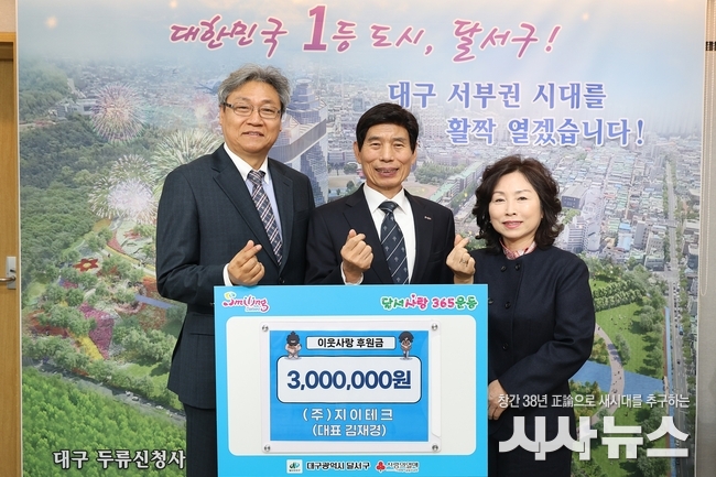 [시사뉴스 장시목 기자]대구 달서구(구청장 이태훈)는 ㈜지이테크(대표 김재경)로부터 관내 취약계층을 위해 사용해 달라며 후원금 300만 원을 기탁받았다고 8일 밝혔다.