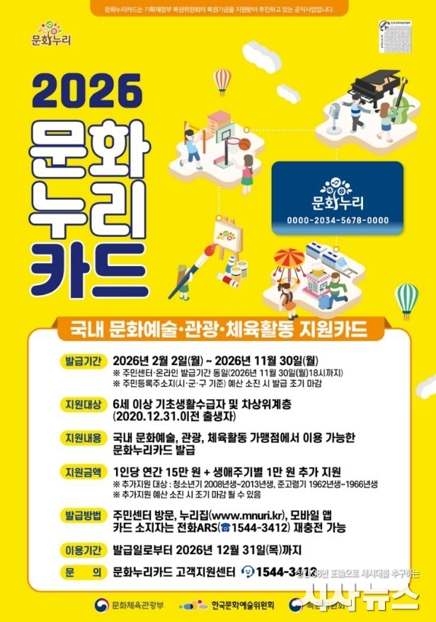 [시사뉴스 장시목 기자]봉화군은 문화취약계층의 문화생활 향유 기회 확대를 위해 2026년 문화누리카드 지원사업을 오는 2월 2일부터 본격 추진한다.