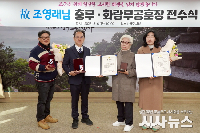 [시사뉴스 장시목 기자]영주시는 지난 6일, 6·25전쟁 참전유공자 고(故) 조영래 상병의 유족에게 충무무공훈장과 화랑무공훈장을 전수하며, 전쟁의 혼란 속에서 전달되지 못했던 국가의 영예를 77년 만에 되돌려주었다.