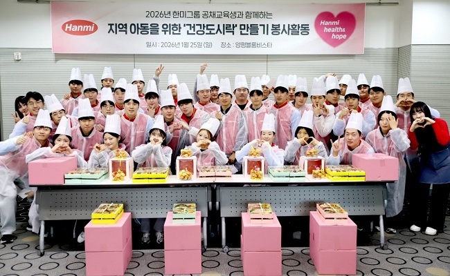 한미사이언스는 지난달 25일 경기도 양평 블룸비스타에서 2026년 공채로 입사한 한미약품 국내영업본부 교육생 40명과 함께 지역 아동복지시설 지원을 위한 ‘건강도시락 만들기' 봉사활동을 진행했다고 12일 밝혔다.