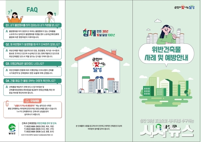 대구 달성군(군수 최재훈)이 건축 관련 절차를 알지 못해 발생할 수 있는 불이익을 예방하기 위해 위반 기준과 처분 절차 등을 알리는 사전 홍보에 나섰다.