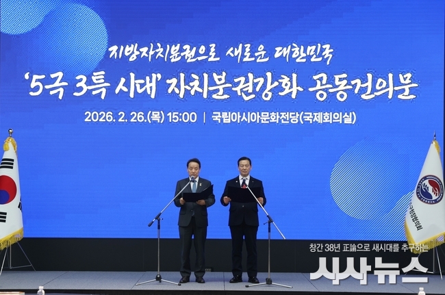 [시사뉴스 장시목 기자]대한민국시장․군수․구청장협의회(대표회장 조재구 대구남구청장, 이하 협의회)는 2월 26일 광주 국립아시아문화전당에서 민선8기 4차년도 제3차 공동회장단회의를 개최하고,『5극3특 시대 자치분권 강화 공동건의문』을 발표하였다.