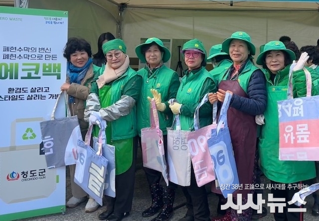 [시사뉴스 장시목 기자]청도군(군수 김하수)은 지난 3월 13일 새마을환경살리기 행사에서 폐현수막을 재활용한 에코백 나눔으로 환경살리기 실천에 나섰다.
