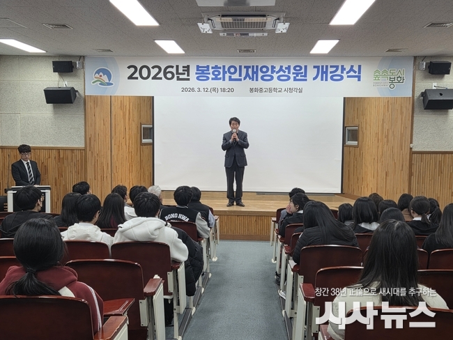 [시사뉴스 장시목 기자]봉화인재양성원은 3월 12일(목) 봉화고등학교 시청각실에서 봉화인재양성원 개강식을 개최하고, 2026학년도 지역 미래인재 육성을 위한 교육과정 운영을 본격 시작했다.