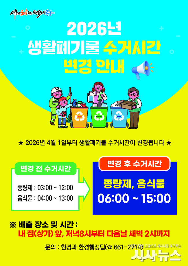 한편, 중구는 수거 시간 변경에 따른 주민 혼란을 최소화하기 위해 안내문 배포, 현수막 게시, 구청 누리집(홈페이지) 안내 등 다양한 홍보 수단을 활용해 적극적으로 알릴 계획이다.
