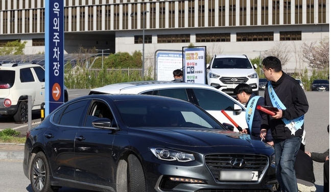 공공기관 차량 2부제 시행으로 세종시 정부세종청사 인근 임시옥외 주차장은 여유로운 모습을 보였다.