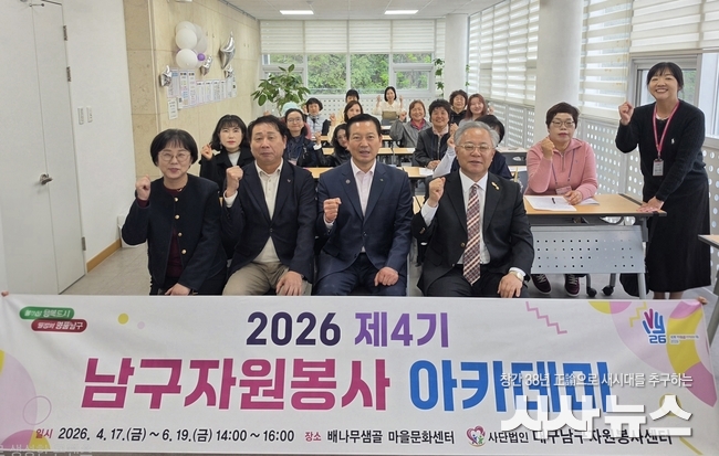 [시사뉴스 장시목 기자](사)대구남구자원봉사센터(이사장 이흥우)는 지난 4월 17일(금) 배나무샘골 마을문화센터에서 ‘2026년 제4기 남구자원봉사 아카데미’ 개강식을 개최했다.