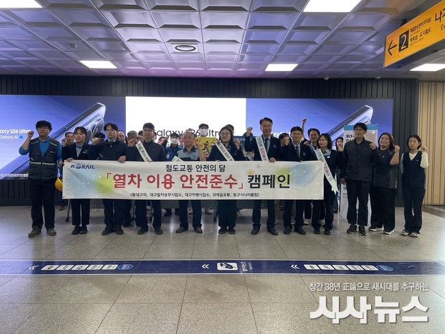 [시사뉴스 장시목 기자]동대구역은 24일 ‘4월 철도교통 안전의 달’을 맞아 역사 내 맞이방 에서 철도 이용객을 대상으로 열차이용 안전준수 캠페인을 시행했다.