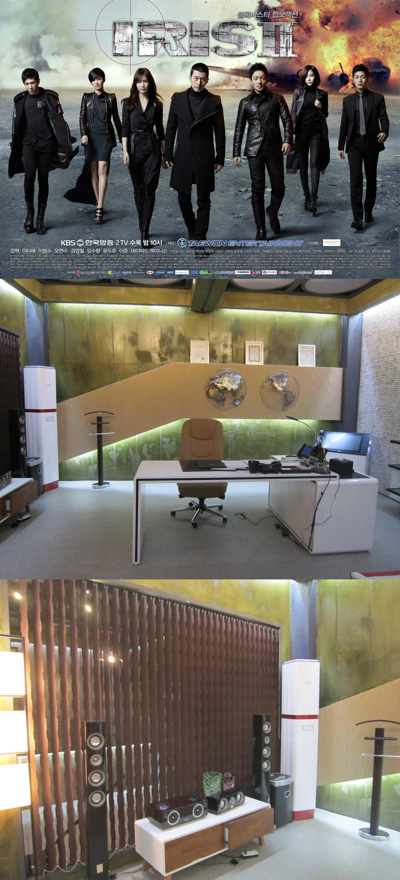 아이리스2는 김현준의 죽음을 둘러싼 이야기와 비밀조직 아이리스 활동으로 체포된 백산 국장의 이야기, 백산 배후에서 모든 사건을 조종한 미스터 블랙의 정체 등의 이야기를 그린 드라마로 모던한 감각이 어울리는 촬영세트장에 ‘립스틱스타일’이 잘 어울림 되어 인테리어 완성도를 높였다.