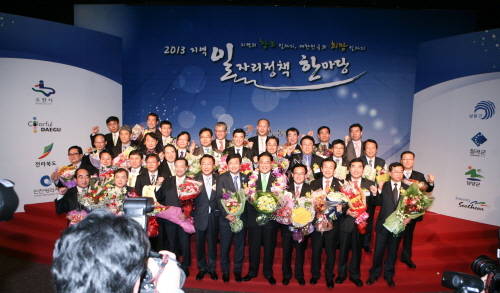 28일 고용노동부가 주최하고 한국능률협회가 주관한 ‘2013지역 일자리정책 한마당’에서는 지역일자리 목표 공시제에서 우수한 성과를 거둔 38개 자치단체를 시상하고 우수사례를 공유하는 시간을 가졌다.