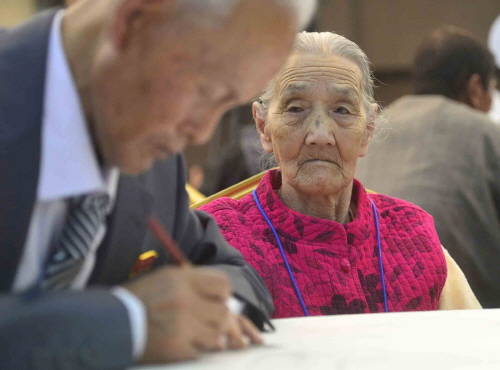 남측 여동생 박인숙(69)씨는 북측으로 돌아갈 오빠를 마지막으로 업어보고 싶었다. 인숙씨는 오빠 박동훈(87)씨에게 다가가 "업어드릴게요"라며 오빠를 일으켰지만 힘에 부치는 건 어찌할 수 없었다. 인숙씨는 오빠의 품에서 엉엉 울었다. 인숙씨는 "3살 때 오빠가 저를 많이 업어주셨대요. 그래서 이번에 제가 대신 업어드리고 싶었어요"라고 말했다.