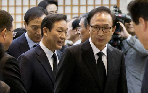 15분 가량 터울로 빈소를 찾은 문 대표는 조문을 마치고 빈소를 빠져나가는 이 전 대통령과 악수를 나누기도 했다. 말 없이 악수만 이뤄졌다.