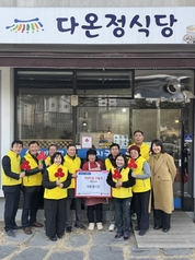 [시사뉴스 이성동 기자] 대구 북구 노원동 지역사회보장협의체(공동위원장 최영준, 정왈교)는 12월 30일(화) 대구사회복지공동모금회가 연중 진행하는 착한대구 캠페인에 동참한 「다온정 식당」을 방문하여 현판 전달식을 가졌다. 다온정 식당(대표 양옥자)은 지역사회보장협의체와 사회복지공동모금회가 함께 진행하고 있는 ‘착한대구 캠페인’에 가입하며, 정기기부를 통해 이웃사랑 실천에 뜻을 밝힘으로써 노원동 착한가게 현판식을 가지게 되었다. 양옥자 대표는“좋은 일에 함께 할 수 있어 기쁘게 생각하며, 앞으로도 어려운 이웃을 돕는데 지속적으로 관심을 두고 도움이 될 수 있도록 하겠다.”고 소감을 전했다. 최영준, 정왈교 공동위원장은 “어려운 시기에도 나눔 문화 확산을 위해 착한대구 캠페인에 동참해 주셔서 감사드린다.”라며 “현판 전달식 통해 착한가게를 한번 더 알리는 계기를 마련하고, 더 많은 가게가 동참하여 함께하는 노원동이 되기를 바란다.”고 말했다. 한편, 착한대구 캠페인을 통해 기부되는 성금은 노원동 지역사회보장협의체를 통해 노원동의 저소득 주민들을 위한 다양한 특화사업에 쓰여질 예정이다.
