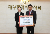 [시사뉴스 이성동 기자] 대구광역시 중구 약사회(회장 박은령)는 지난 24일 열린 2026년도 중구 약사회 정기총회에서 중구 관내 어려운 이웃을 돕기 위해 성금 300만 원을 대구 중구청(구청장 류규하)에 기탁했다. 중구 약사회는 매년 정기총회를 계기로 회원들의 자발적인 참여를 통해 나눔 활동을 이어오고 있으며, 올해 역시 지역사회에 온정을 전하고자 성금을 마련했다. 박은령 회장은 “지역사회와 함께하는 단체로서 회원들의 뜻을 모아 나눔을 실천하게 됐다”며 “앞으로도 이웃의 건강과 삶의 질 향상에 보탬이 될 수 있도록 사회적 책임을 다하겠다”고 말했다. 류규하 중구청장은 “매년 꾸준히 이웃사랑을 실천해 주시는 중구 약사회에 깊이 감사드린다”며 “기탁해 주신 성금은 도움이 필요한 이웃들에게 정성껏 전달해 따뜻한 지역사회를 만드는 데 소중히 사용하겠다”고 말했다. 기탁된 성금은 관내 홀몸 어르신과 장애인, 저소득 가구 등 취약계층을 위한 지원에 사용돼 따뜻한 겨울나기에 도움을 줄 예정이다.