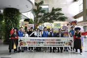 [시사뉴스 이용만 기자] 천안시청공무원노동조합(위원장 이영준)과 천안시 감사관은 2025년 9월 22일(월), 천안시청 1층 로비에서 다가오는 추석 명절을 맞아 ‘명절선물 안 주고 안 받기’ 청렴캠페인을 공동으로 개최했다. 이번 캠페인은 “명절선물 단칼에! 부정부패 단칼에!”라는 강력한 슬로건 아래 전개되었으며, 출근하는 공직자들에게 명절선물을 대신해 자석택배칼과 장바구니를 나누어 주며, 공직사회의 청렴 실천을 생활 속에서 실현할 수 있도록 독려했다. 이영준 천안시청공무원노동조합 위원장은 “공직자의 청렴은 단단한 신뢰의 기반 위에서 시작되며, 특히 명절과 같은 유혹의 순간에 스스로의 원칙을 지키는 것이 진정한 청렴”이라며, “단호한 실천을 통해 깨끗하고 당당한 공직문화를 만드는 데 노조가 앞장서겠다”고 청렴 의지를 분명히 밝혔다. 그는 또한 “노동조합은 형식적인 구호를 넘어, 실질적인 행동을 통해 조합원 스스로 자긍심을 가질 수 있는 청렴한 근무환경 조성을 위해 지속적인 노력을 이어가겠다”고 강조했다. 김석필 천안시장 권한대행(부시장)은 “이번 청렴캠페인은 천안시 공직자 모두가 원칙과 기준을 되새기며 실천을 다짐하는 의미 있는 시간이었다”며, “앞으로도 감사