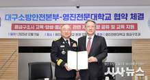 [시사뉴스 장시목 기자]대구 시민의 생명 안전을 책임지는 전문 응급구조 인력 양성을 위해 영진전문대학교(총장 최재영)와 대구소방안전본부(본부장 엄준욱)가 손을 맞잡았다. 양 기관은 11일 영진전문대 회의실에서 응급구조 분야 전문 인력 양성과 지역 안전 역량 강화를 위한 산학협력 업무협약을 체결했다. 이날 협약식에는 대구소방안전본부 엄준욱 본부장과 관계자, 영진전문대학교 최재영 총장과 응급구조과 교수진 등이 참석해 협력의 의미를 더했다. 양 기관은 협약을 통해 ▲응급구조사 양성과정 운영 협력 ▲현장 실습 및 교육 지원 확대 ▲응급구조 분야 공동 연구 ▲교육 콘텐츠 개발 및 공유 ▲재난 대응 전문 인력 양성 등 보유 역량과 경험을 기반으로 대구지역 응급구급서비스 향상을 위해 함께 협력하기로 했다. 특히 대구소방안전본부는 소속 소방공무원 가운데 응급구조사 교육수요자를 선발해 영진전문대학교에 위탁하고, 영진전문대학교는 실무 중심의 교육 프로그램과 교육장, 전문 강사진을 제공해 체계적인 교육을 지원할 예정이다. 또한 영진전문대 학생들이 실제 재난·구급 현장 실습에 참여할 수 있도록 양 기관이 긴밀한 협력체계를 구축하기로 했다. 영진전문대학교는 주문식교육 기반의 실무