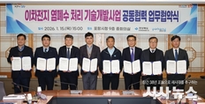 [시사뉴스 하정수 기자] 경상북도는 15일 포항시청 중회의실에서 이차전지 산업의 난제로 꼽히는 염폐수 처리 기술개발을 위한 업무협약(MOU)을 체결했다. 이번 협약은 대한민국 이차전지 산업의 글로벌 허브로 도약 중인 포항 지역의 이차전지 폐수 문제를 근본적으로 해결하고, 산업 경쟁력을 결정짓는 핵심 요소인 ‘염폐수 처리’ 기술을 확보하기 위해 마련됐다. 협약에는 경상북도, 포항시를 비롯해 ㈜범우, ㈜에코프로HN, ㈜테크윈, 효림이엔아이(주), ㈜유앤유, ㈜엔이비 등 기술개발 컨소시엄을 주도하는 6개 기업이 참여했다. 최근 이차전지 산업이 급격히 성장함에 따라 고농도 염폐수 처리는 기업의 지속 성장 가능성과 직결되는 시급한 과제가 되었다. 이에 기후에너지환경부는 관련 기술 확보를 위해 5년간 총 475억 원 규모의 국가 기술개발 공모사업을 추진 중으로 23일까지 관련 기업을 대상으로 사업신청서를 받고 있다. 경상북도는 이번 협약을 통해 국가 공모사업에 공동으로 대응하며, 이차전지 염폐수 처리 기술개발 연구과제 수행과 기술 실증을 위한 시험부지 및 인프라 제공과 연구 성과의 현장 적용 및 정책 연계 등에 긴밀히 협력하기로 했다. 이 사업이 성공적으로 추진될 경우