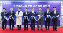 [시사뉴스 홍경의 기자] 신한금융그룹은 24일 전북 전주에 위치한 신한펀드파트너스 전주NPS본부에서 '신한금융허브 전북혁신도시' 출범식을 열고 전북혁신도시를 연기금 연계 자산운용 특화 금융 중심지로 육성하겠다고 밝혔다. 신한금융허브 전북혁신도시는 국민연금공단과의 협력사업을 신속하게 추진할 수 있도록 자본시장·자산운용 관련 주요 기능을 전북으로 모아 체계적으로 운영한다. 이를 기반으로 실물경제와 직접 연결되는 '생산적 금융'을 지역에서 구현한다는 계획이다. 신한자산운용은 국내 종합자산운용사 최초로 전주에 사무소를 개소해 자본시장 비즈니스 전반이 전북에서 실질적으로 가동할 준비를 마쳤다. 청년 일자리 창출과 지역 경제 활성화를 위해 지역 대학생과 취업 준비생을 대상으로 인턴십 채용도 진행 중이다. 신한금융은 현재 은행·증권·자산운용·펀드파트너스 등 전주 지역에 근무하는 130여 명의 인력을 단계적으로 300여 명으로 확대하고, 그룹의 역량을 집중해 자본시장 핵심 거점으로 육성할 계획이다. 이날 출범식에는 진옥동 신한금융 회장, 정상혁 신한은행장, 이선훈 신한투자증권 사장, 이석원 신한자산운용 사장, 김정남 신한펀드파트너스 사장 등 그룹 경영진과 김성주 국민연금공