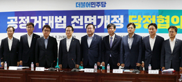 [시사뉴스 김세권 기자] 21일 정부와 여당의 경제 브레인이 총 출동해 공정거래법 전면 개정을 논의했다. 이날 국회 의원회관 더불어민주당 정책위회의실에서 열린 '공정거래법 전면개정 당정협의'에는 홍영표 원내대표, 김태년 정책위의장, 김상조 공정거래위원장을 비롯해 민병두 정무위원장, 홍익표 정책위 수석부의장, 김영진 전략기획위원장, 김정우 당대표 비서실장, 고용진 정책위 상임부의장, 유동수 정무위원 등이 모였다. 사실상 여당의 핵심 경제 브레인들이 총 출동한 모양새다. 이들은 공정거래법 개정과 관련해 △ 전속고발제 폐지 및 형사제재 강화 △ 혁신벤처기업의 M&A(인수합병) 활성화 △ 대기업의 순환출자 규제 방안 등을 논의했다. 한마디로 '대기업의 불공정 거래 관행을 개선해서 공정경제 토대 위에 소득주도성장과 혁신성장을 동시에 구현하겠다'는 얘기다. 이를 위한 방법론으로 가격담합, 입찰담합, 시장분할 등의 담합행위에 대한 전속고발제를 폐지하고 형사제재를 강화하기로 의견을 모았다. 또한 담합과 시장 지배력 남용 등의 법 위반 행위에 부과하는 과징금의 최고 한도를 2배로 올리기로 했다. 홍영표 민주당 원내대표는 "대기업의 정상적 경영활동은 적극 지원해야하나