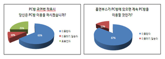 금연법 시행으로 인해 PC방창업을 준비하는 사람들이 고민의 깊어지고 있다. 금연법 시행이 PC방 매출에 부정적인 영향을 미친다는 사항들이 제기되고 있기 때문이다. PC방창업 업계에서는 금연법 시행으로 일부 PC방의 생존권이 걱정되는 것은 사실이라고 이야기한다.그러나 금연법은 관공서, 학교, 병원, 대형건물에 이어 음식점, 카페 등 대부분의 업종에 같은 조건으로 시행이 확대되고 있기에 PC방만의 문제는 아니다. 또한 PC방은 그 동안 전용선오과금, 게임회사의 비용문제, 원자재상승으로 인한 PC부품의 문제, PC방에 대한 사회적인 문제 등 다양한 환경적인 요인 속에서도 꾸준한 성장세를 그려왔기 때문에 적절한 대응을 갖춘다면 PC방 창업은 기회의 요소가 될 수 있다.시즌아이 PC방은 2013년 2월~3월 시즌아이PC방을 이용하는 고객을 대상으로 금연법에 관한 PC방 이�