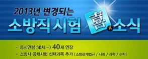 에듀피디는 2013 경기소방공무원 공개경쟁채용시험 대비 강좌를 오픈하고 수험생들을 위한 대대적인 학습 지원에 나선다고 28일 밝혔다. 경기도는 2013년 소방공무원을 남자 575명, 여자 125명으로 총 7백 명 신규 채용할 예정이다. 신규채용 시험은 1차와 2차로 구분하여 2회 시행되며, 시험과목은 국어, 한국사, 영어, 소방학개론, 행정법총론 등 5과목에서 국어, 한국사, 영어 필수 3과목과 소방학개론, 행정법총론, 소방관계법규, 사회, 과학, 수학 중 선택 2과목으로 변경되었다.에듀피디 경기소방공무원 공개경쟁채용시험 대비 강좌는 올해부터 변경된 소방직공무원의 새로운 출제경향을 반영하여 변경된 소방직공무원 시험 출제유형과 핵심 변화 포인트를 분석하고 이에 따른 학습 대책을 체계적으로 제시한 것이 특징이다. 소방직공무원 수험생들은 이번 2013 경기소방직공�