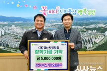 [시사뉴스 장시목 기자](재)경산시장학회(이사장 조현일)는 14일 경산서비스 기아오토큐㈜(대표 최의곤)로부터 지역 인재 육성을 위한 장학금 500만 원을 기탁받았다고 밝혔다. 최의곤 대표는 “추운 계절이지만 학생들의 꿈만은 따뜻하게 이어지길 바란다”며, “그 동안 지역민과 함께 쌓아온 믿음을 지역의 미래를 위한 나눔 활동에 꾸준히 동참하겠다”고 말했다. 조현일 이사장은 “지역 인재를 함께 키워가려는 대표님의 마음에 감사드린다”며, “장학기금은 지역 미래를 책임질 학생들을 위해 투명하고 효과적으로 활용하겠다”고 전했다. 한편, 경산시 압량읍 금구리에 위치한 경산서비스 기아오토큐㈜는 지역 주민들에게 신뢰 기반의 정비·검사 서비스를 제공하며, 지역사회와 함께 성장해 왔으며, 앞으로도 나눔과 상생의 가치를 실천하는 다양한 사회공헌 활동을 이어갈 계획이다.