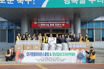 [시사뉴스 이성동 기자] 대구영광라이온스클럽(회장 박덕규)과 영남일보 CEO아카데미 27기 원우회(회장 정한근)는 12월 19일(금) 북구 관내 사회복지시설을 위해 1,000만원 상당의 후원물품(쌀 130포, 각·물티슈 대량 등)을 북구청(청장 배광식)에 전달했다. 이번 후원은 (재)행복북구문화재단(대표이사 박정숙)이 주도하여 후원기관에 복지시설의 필요 물품을 전달하고, 후원기관에서 이를 적극 수용하여 마련된 자리이다. 특히, 사회봉사단체, 사회지도층그룹, 관(官)과 문화기관이 연계해 지역사회 나눔 문화를 실천하고 확산한 자리로, 연말을 맞아 어려운 이웃들에게 실질적인 도움을 제공해 큰 의미를 지닌다. 이날 전달식에는 배광식 북구청장을 비롯해 손인락 영남일보 사장, 김경웅 국제라이온스협회 356-A(대구)지구 총재, 박덕규 대구영광라이온스클럽 회장, 박정숙 (재)행복북구문화재단 대표이사가 참석해 나눔의 뜻을 함께했다. 영남일보 CEO 아카데미 및 국제라이온스협회 관계자는 “지역사회와 함께하는 나눔을 통해 어려운 이웃들에게 조금이나마 힘이 되기를 바란다”며, “앞으로도 지속적인 사회공헌 활동을 이어가겠다”고 밝혔다. 배광식 북구청장은 “지역사회를 위해 따뜻한