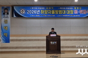 [시사뉴스 장시목 기자]경산시 하양자율방범대(신임 대장 황봉대)는 17일 하양읍 행정복지센터 3층 대강당에서 2026년 대장단 이·취임식을 개최했다. 이날 행사에는 전·현임 자율방범대원과 조지연 국회의원, 채은주 하양읍장, 역대 대장들과 지역 기관·단체 관계자 등 100여 명이 참석해 이임하는 김태익 전임 대장의 활동 성과를 되돌아보고 신임 대장단을 소개하는 시간을 가졌으며, 또한 어려운 이웃을 돕기 위한 성금 50만 원을 기탁하여 지역사회 나눔 실천에도 앞장섰다. 황봉대 신임 대장은 “전임 김태익 대장님의 헌신과 노고에 깊이 감사드린다”며 “지역 주민의 안전을 최우선으로 책임감 있는 방범 활동을 펼치고, 경찰·행정기관·지역사회와의 협력을 강화해 신뢰받는 자율방범대를 만들어가겠다”고 포부를 밝혔다. 채은주 하양읍장은 “하양 자율방범대는 주민의 일상 가장 가까운 곳에서 안전을 지켜온 든든한 이웃!”이라며 “새로운 대장단을 중심으로 행정과 협력이 더욱 강화돼 하양읍이 안전한 지역으로 자리매김하길 기대하며, 기탁된 성금은 관내 저소득 취약계층을 위해 감사히 쓰겠다”고 전했다. 한편, 하양 자율방범대는 1990년 1월 4일 발대 이후 36년간 야간 순찰과 지역 행사