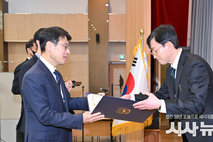 [시사뉴스 하정수 기자] 경주시는 2일 오전 2026년 시무식과 신년인사회를 잇따라 열고 새해 시정 운영의 출발을 알렸다. 이날 오전 청사 내 대회의실에서 열린 신년인사회에는 주낙영 시장과 최혁준 신임부시장을 비롯한 간부공무원 및 시의회와 공무원 노조 관계자 등이 참석해 새해 인사를 나누며 시정에 대한 공감대를 다졌다. 행사는 전체 인사와 새해 덕담, 간부공무원 인사 순으로 간소하게 진행됐다. 이어 청사 내 알천홀에서는 2026년 시무식이 열렸다. 시무식에는 본청 직원과 직속기관·사업소 및 읍면동장 등 공무원들이 참석했으며, 국민의례와 시정 홍보 영상 상영, 신년사를 통해 새해 시정 방향을 공유하는 자리로 마련됐다. 이날 일정에 앞서 최혁준 신임 부시장 임명장 수여식이 진행돼, 새해 시정 운영을 이끌 핵심 간부의 공식 취임을 알렸다. 주낙영 경주시장은 “이번 신년 행사를 통해 전 직원이 한자리에 모여 새해 각오를 다지고, 흔들림 없는 시정 운영과 현장 중심 행정을 통해 시민이 체감하는 변화를 만들어 나가겠다는 뜻을 공유했다”고 말했다.