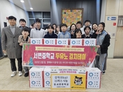[시사뉴스 이성동 기자] 대구 북구 서변중학교(교장 이영미) 교사와 학생들은 12월 5일(금) 무태조야동행정복지센터(동장 최성옥)를 방문하여 직접 담근 김치 8kg 20박스를 후원했다. 이영미 교장은 “우리 학교는 학생들이 유네스코 인류무형문화유산인 김장을 체험하며, 전통문화 계승과 이웃사랑 실천을 배우길 바라는 마음에서 2022년부터 「두유노 김치 데이」를 진행하고 있다.”며, “앞으로도 우리 학교는 학생들과 지역사회가 함께하는 다양한 활동을 지속적으로 이어가겠다.”고 말했다. 최성옥 무태조야동장은 “정성 듬뿍 담긴 나눔으로 따뜻한 겨울을 만들어준 서변중학교 학생들과 교직원에게 감사드린다. 지역의 어려운 이웃들에게 김치와 함께 학생들의 따뜻한 마음까지 잘 전달하겠다.”고 전했다.
