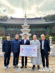 [시사뉴스 장시목 기자]청도군(군수 김하수) 청도읍 평양리에 위치한 대한불교조계종 대감사 회주설우(스님)에서 지난 12월 19일 어려운 저소득가구를 위해, 현금 500만원을 청도읍사무소에 전달했다. 2014년부터 한해도 빠짐없이 부처님의 자비와 온정으로, 쌀기부로 시작하여 작년에는 라면 300박스를 기탁해 오고 있는 대감사는 지역사회 나눔 문화 확산에 크게 기여하고 있다. 기탁받은 현금 500만원은 2026년 희망나눔캠페인 성금모금에 전달되었으며, 대감사 회주 설우스님은 “연말연시 외롭고 힘들게 사는 한부모가정, 장애인가정 및 저소득가구에 도움이되고 겨울을 따뜻하고 건강하게 잘 보냈으면 좋겠다”고 말했다. 이철승 청도읍장은 “매년 대감사에서 따뜻한 애정과 자비로 저소득가구에 많은 물품기탁 및 성금모금에 참여해 주셔서 늘 감사드리며 따뜻한 마음을 담아 저소득가구에 도움이 되고 살기좋은 복지청도 실현을 위해 최선을 다하겠다”며 감사의 박수를 보냈다.